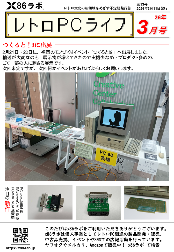 x86ラボは個人事業として レトロPCの修理や周辺機器開発、販売を行っています。