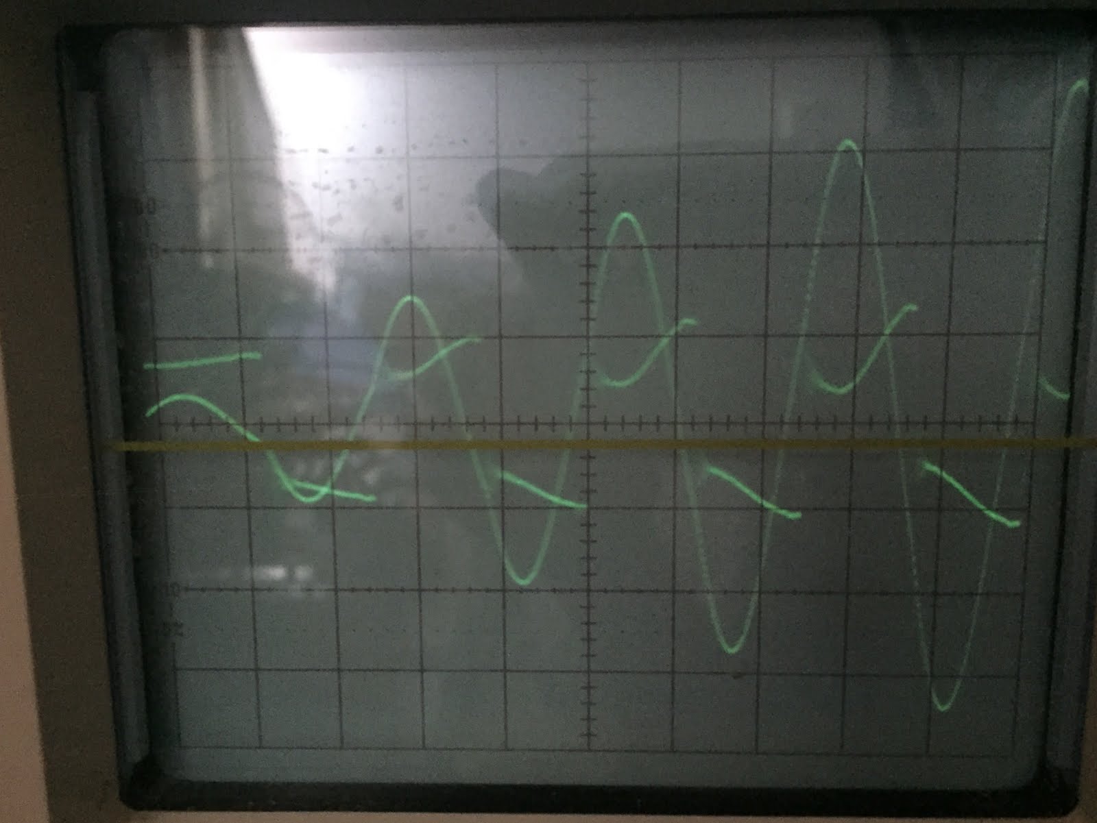 こっちは位相補正なしの時の波形です。見比べると位相補正によってスイッチング時のスパイクが消えてるのがわかります(見づらいけど)。