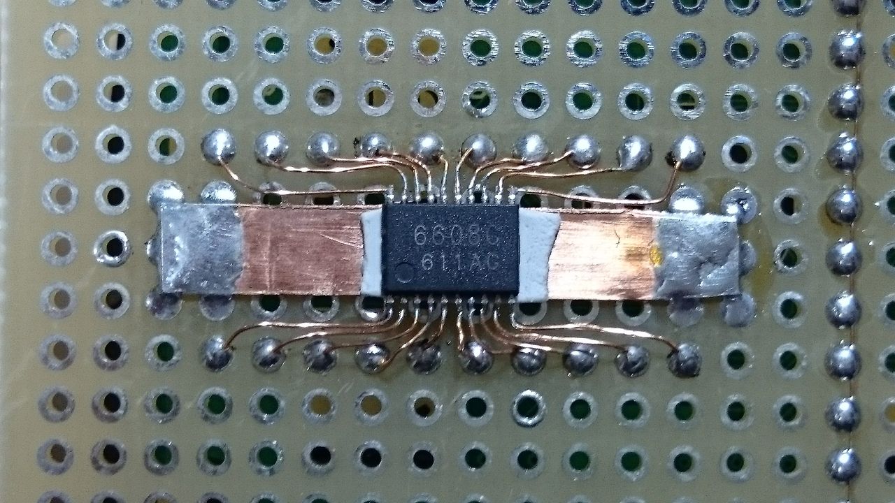 そこで、マイクロステップ駆動というものでもっと細かな制御をすることにしました。電流値を細かく制御するらしいのですが、マイコンで制御するのは大変めんどくさそうなので専用ICのTB6608FNGつ使うことにしました。