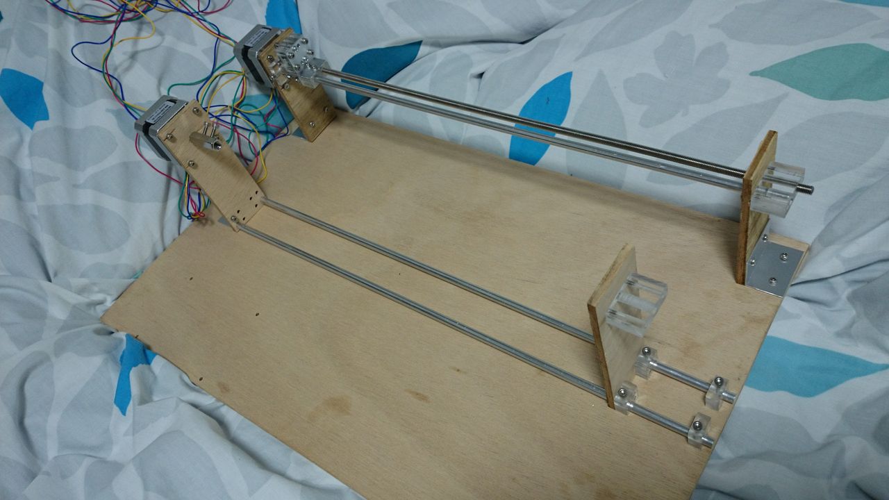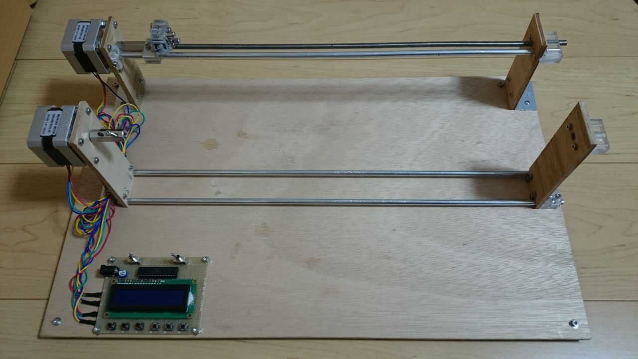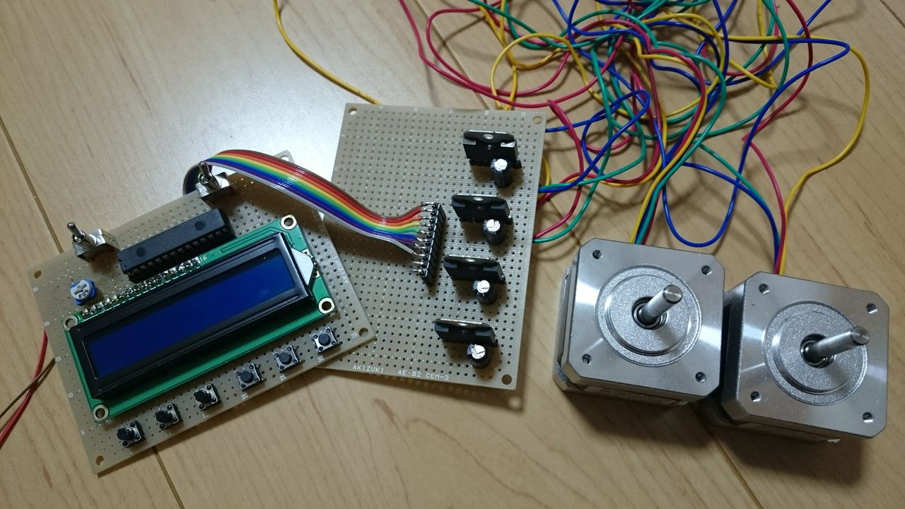 この時ステッピングモータは二相励磁で動かしていて、その分解能が低かったためか、モータが思ったよりガクガク動いてあまりよろしくありませんでした。